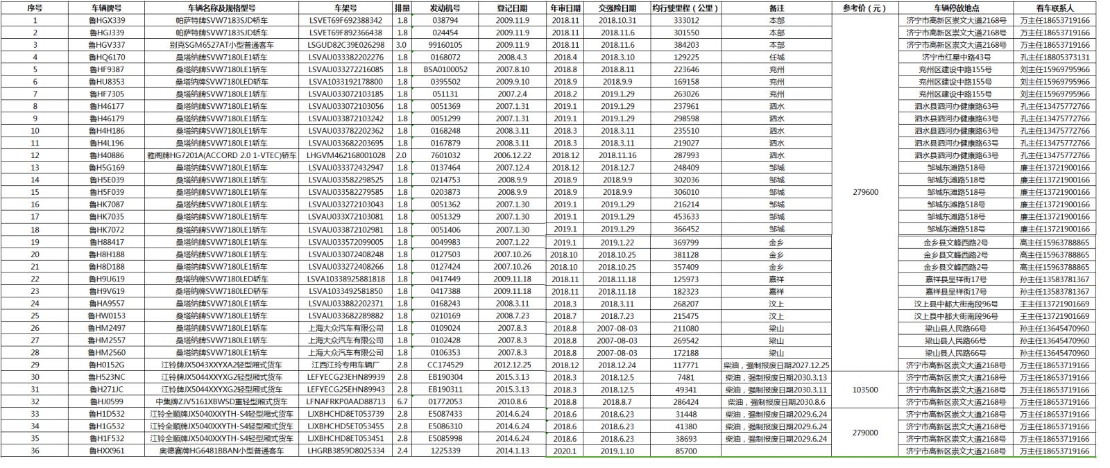 (表格信息僅供參考,車輛以現(xiàn)狀為準進行拍賣)
